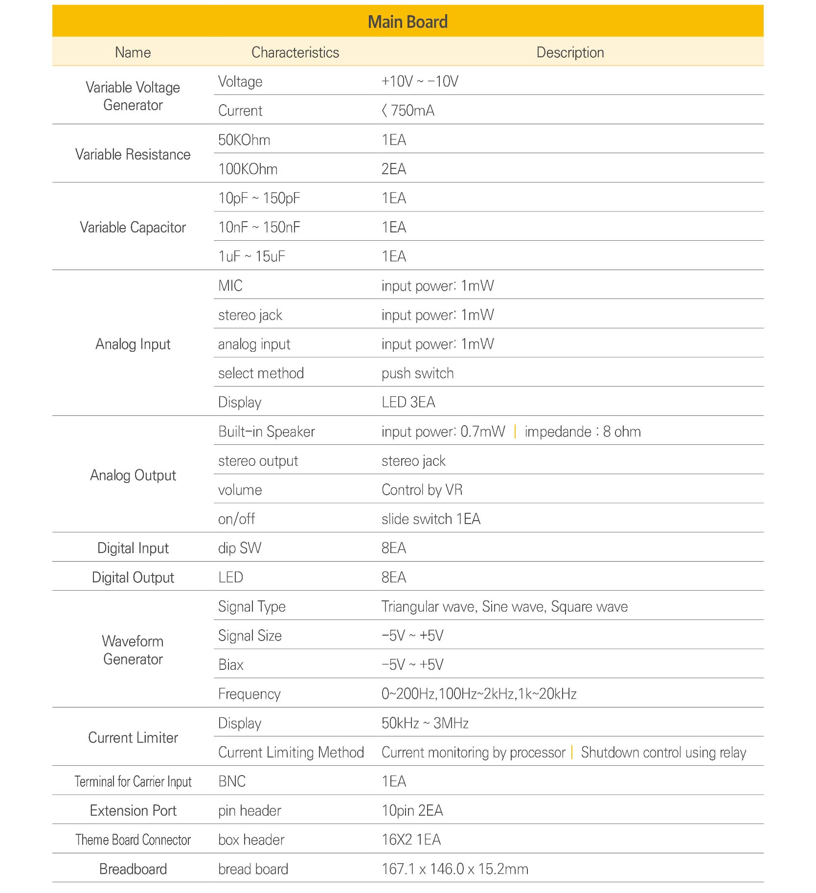 the waveform of main parts. Then, we can know how to use Waveform Generator and Oscilloscope. For Education Course, basic communication equipment includes Basic Circuit, Analog Communication, Digital Communication and Application Communication and each communication has own Module. So we can start Test immediately after mounting Module to the equipment. Application Circuits of AM receiver and FM receiver are added in order to understand how the public airwaves is received. This provides BreadBoard and Ext.Power so we can make other communication circuit with it