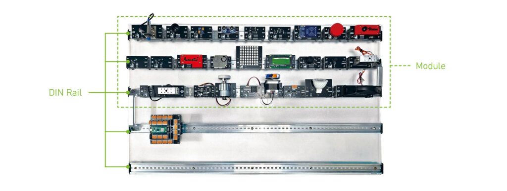 Freely position and rearrange the module with clip bracket + layout board of DIN Rail structure for industrial equipment, Quick configuration of crash- resistantr ·vibration-resistant layout and Line Tracing, Conveyor and Sorting Layout