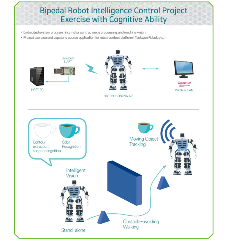 HBE-ROBONOVA AI 3 is an intelligent motion robot that processes video and vision algorithms and is the optimal platform to provide future intelligent robot education environment.