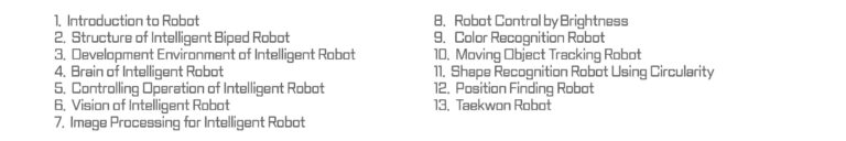 By equipping the existing biped robot with a brain board and a visual module, it is possible to perform intelligent actions as well as perform simple robot operations that were previously made and stored in the PC.